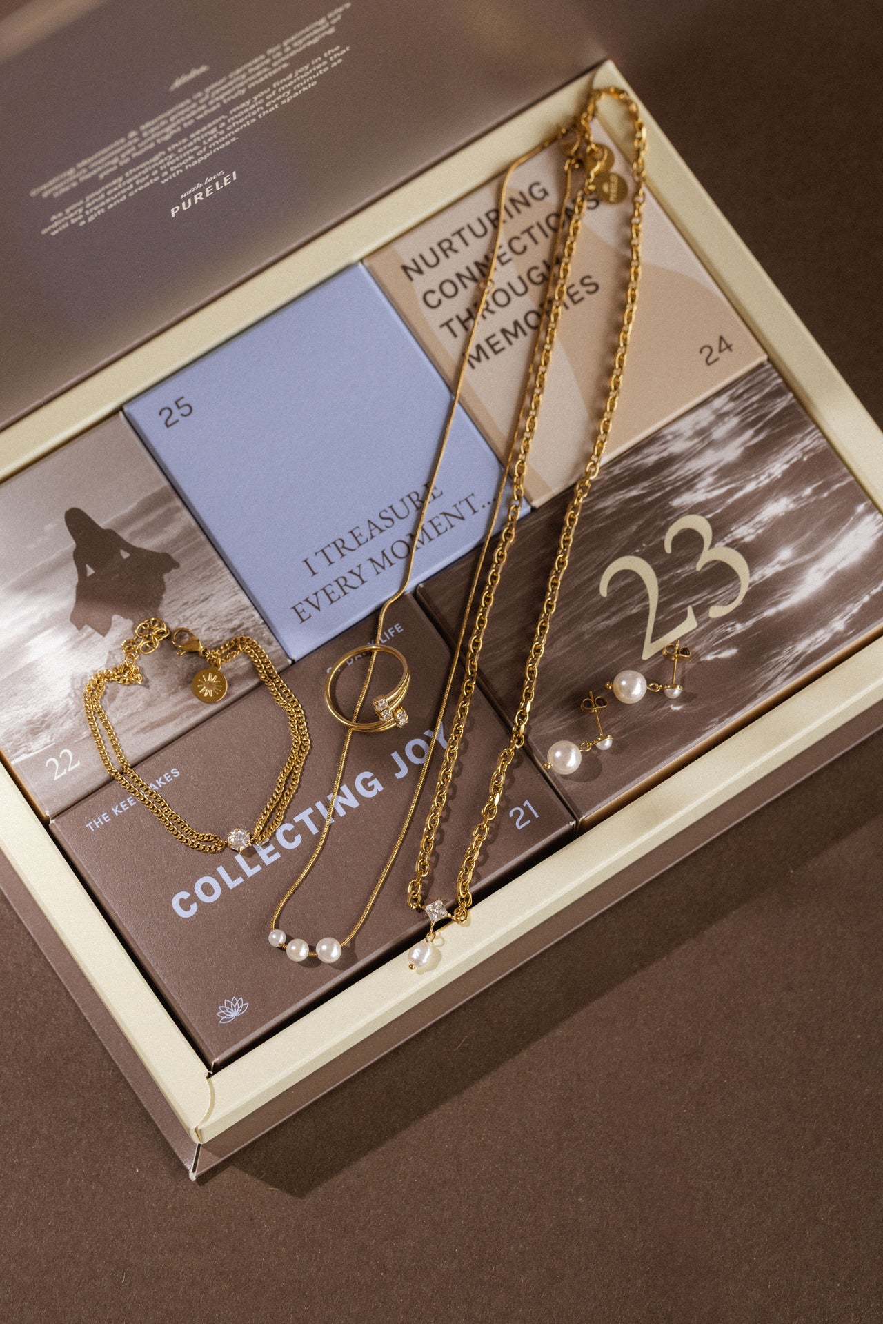 Hier eine kleine Sneak Peek auf den Inhalt im PURELEI Schmuck-Adventskalender 2025: